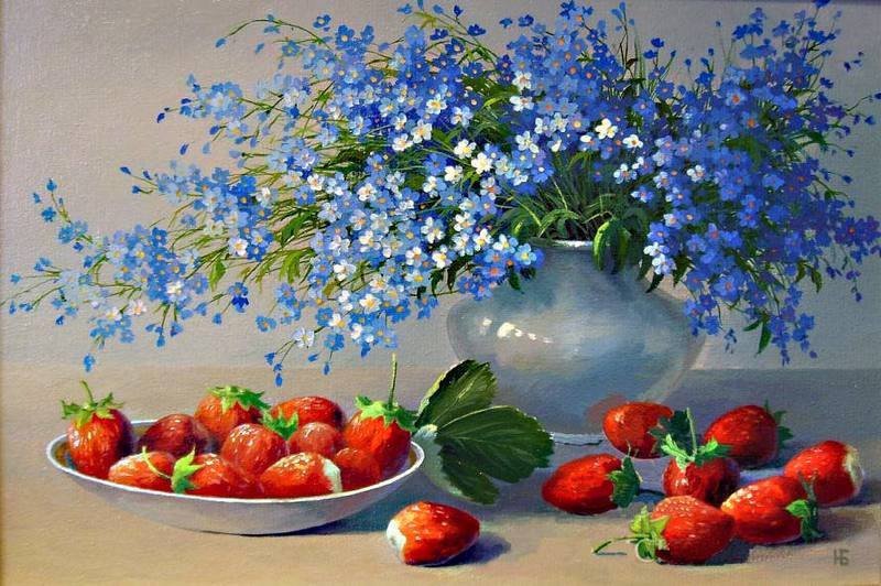 Схемы вышивки, похожие на «незабудки и клубника» (№30967) по сюжету