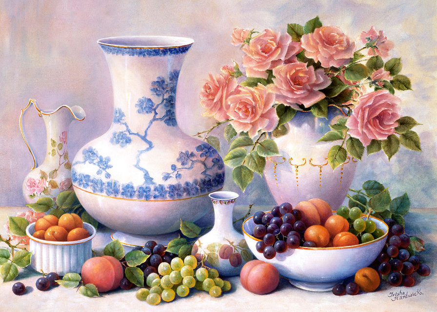 Комментарии к схеме вышивки «натюрморт с розами» (№313329)