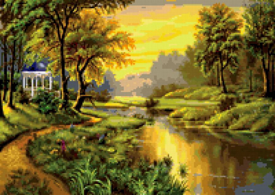 Схема вышивки «беседка у реки» (№317071)