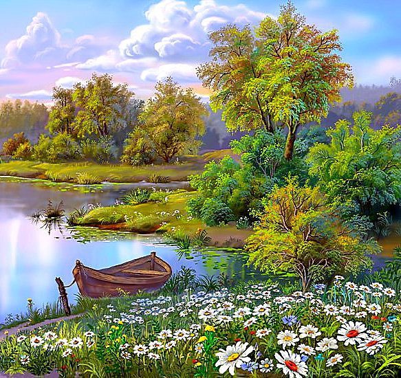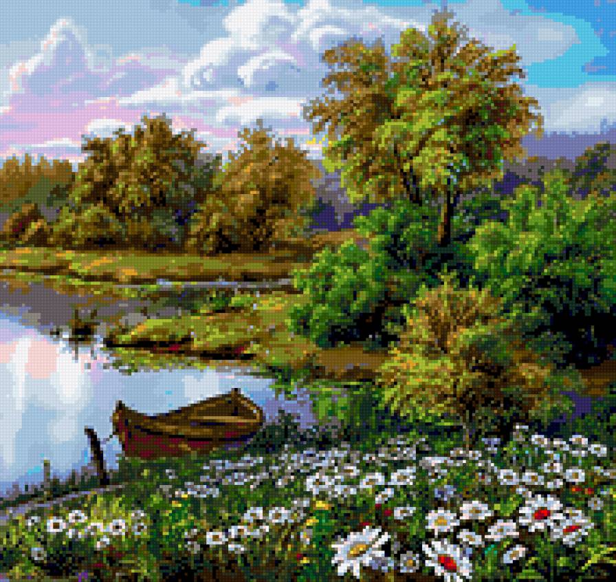 Схема вышивки «Озеро и ромашки» (№339754)