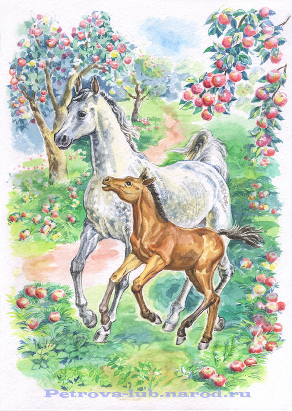 Схема вышивки «кони в яблоках» (№36010)