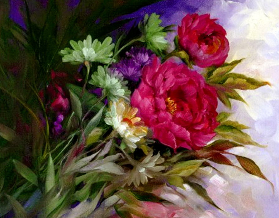 Теги: ваза, цветы, акварель, живопись, пионы, букет, розы.