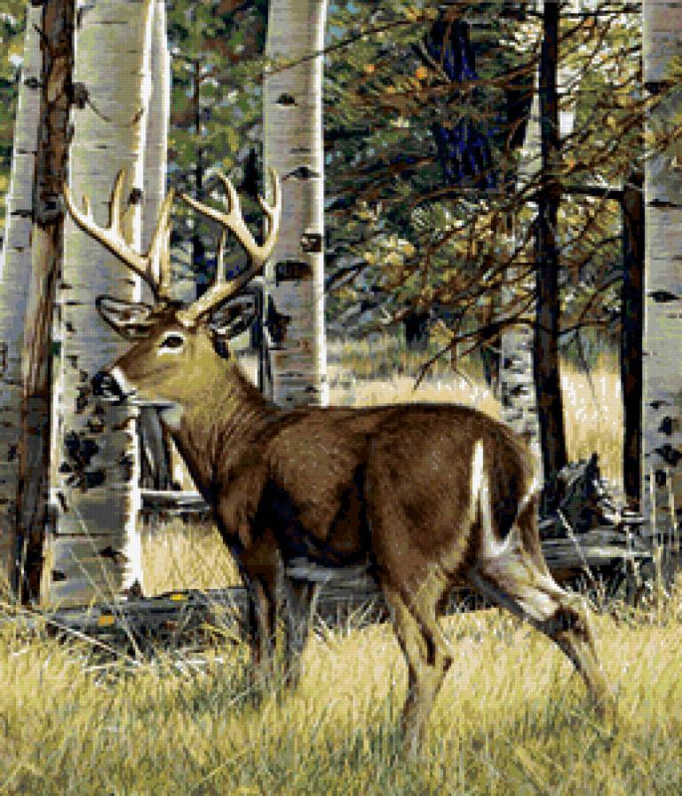 Схема вышивки «олень в лесу» (№379705)