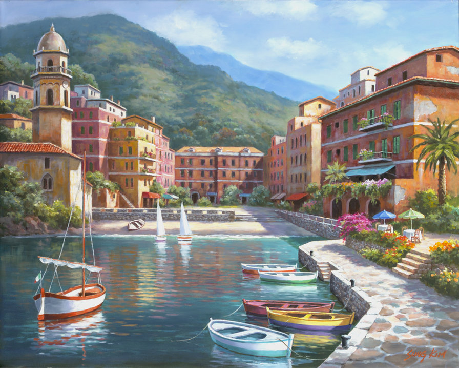 Теги: побережье, море, небо, дома, пейзаж, лодка.