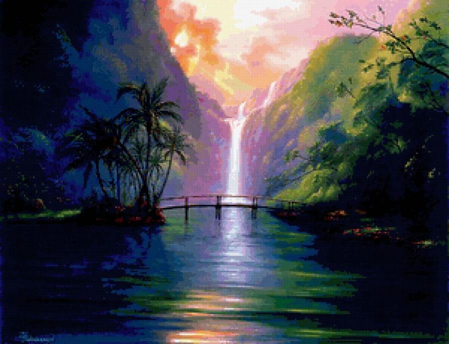 Теги: красота природы, природа, водопад, небо, лес, пейзаж, горы.