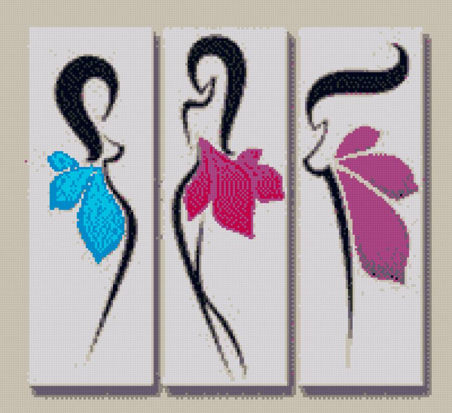 Схемы вышивки, похожие на «Триптих"Девушки"абстракция» (№439648) по сюжету
