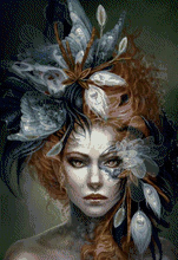 Схема вышивки «Девушка и сокол» Девушка и сокол