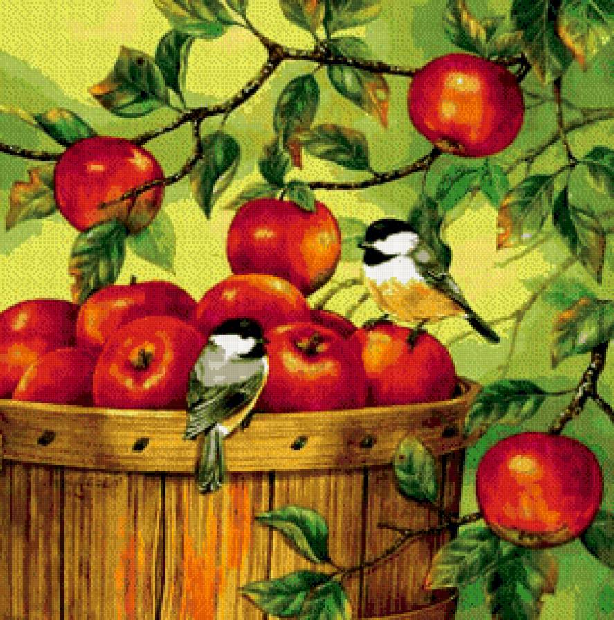 Вышивка крестомАвторыСхемы вышивкиптички на яблоках