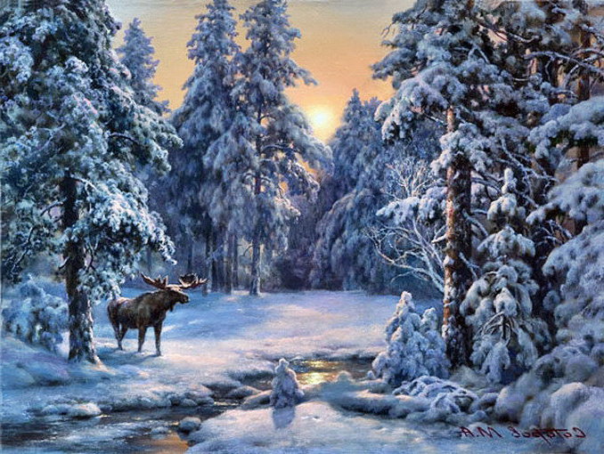 Комментарии к схеме вышивки «лось в зимнем лесу» (№482566)