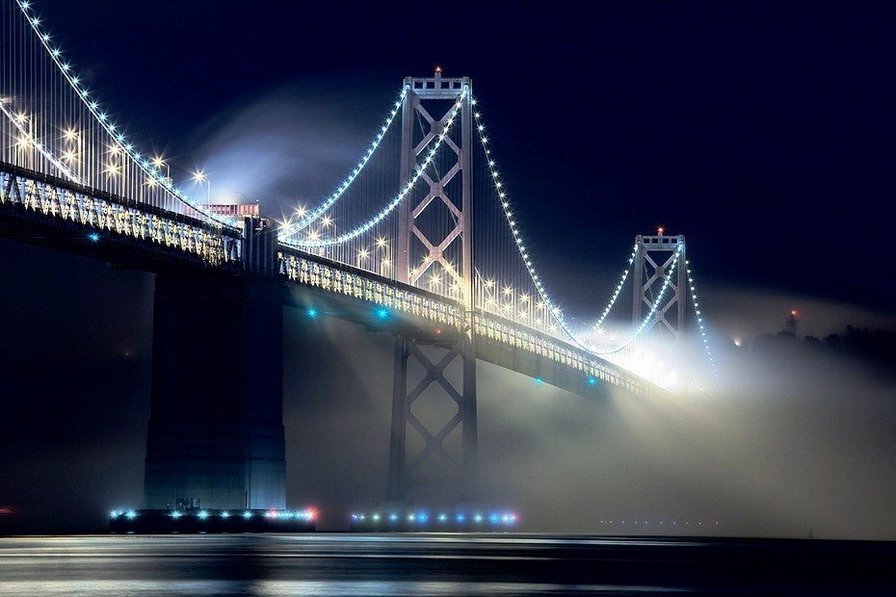 Теги: река, мост, цвет, америка, нью йорк, фонарь, весна, вишня, вечер.