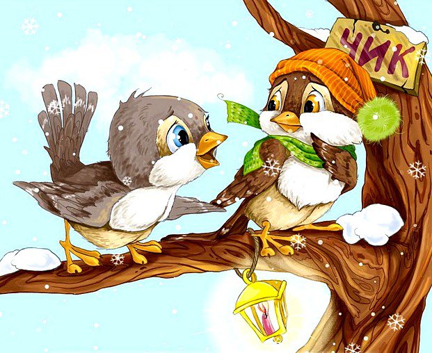 Теги: птицы, олени, зима, домик, дом, снег, птички, снеговик, рисунок.