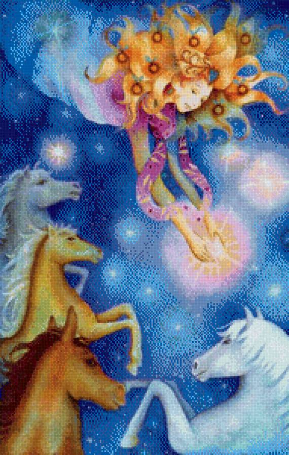 Схема вышивки «Фантазия с лошадьми» (№514279)