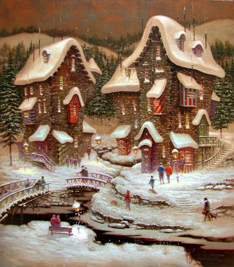 Теги: домик, мост, зима.