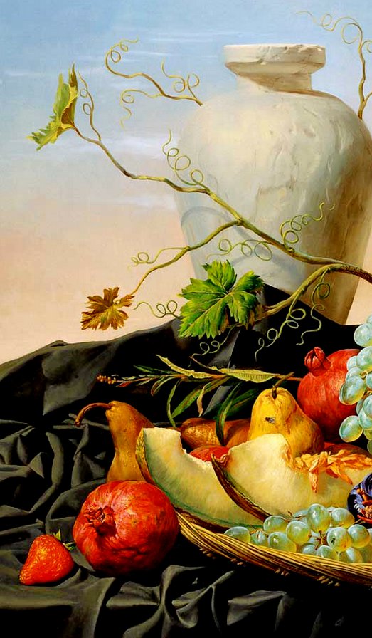 Теги: гранат, живопись, цветы, виноград, фрукты, натюрморт.