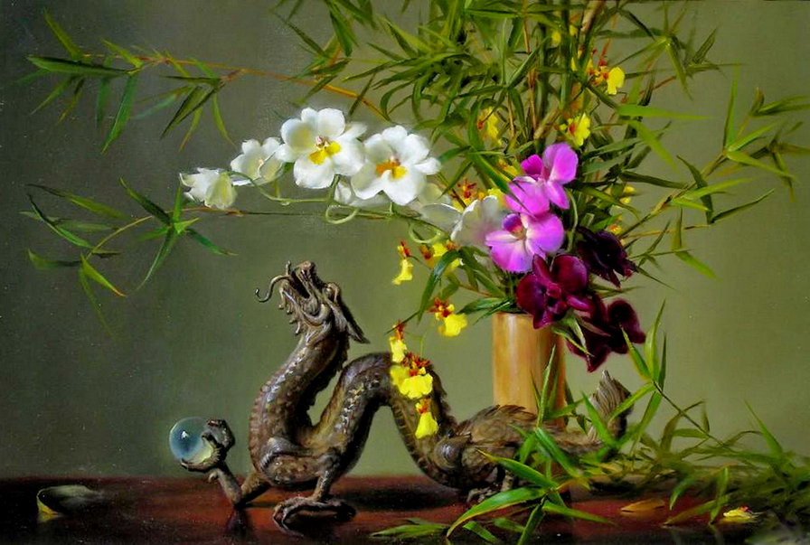 Теги: цветы, георгин, букет, роза, гладиолус, ваза, живопись, клематис.