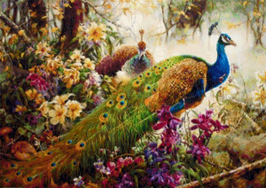 Схема вышивки «Павлины в цветах» Павлины в цветах