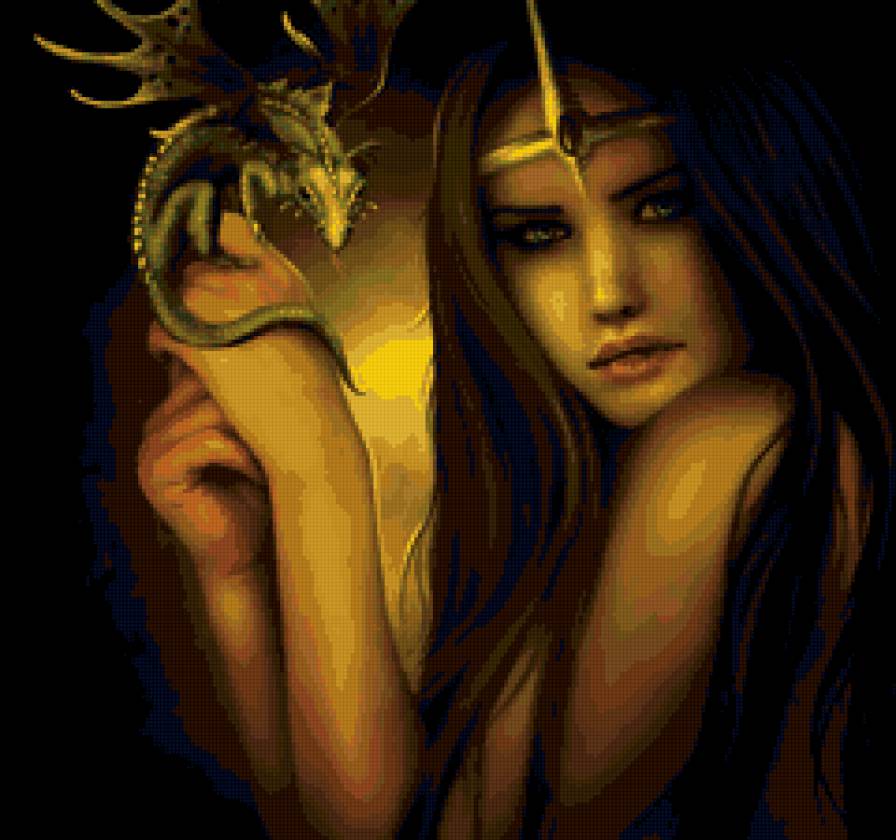 Схема вышивки «девушка и дракон» (№56126)