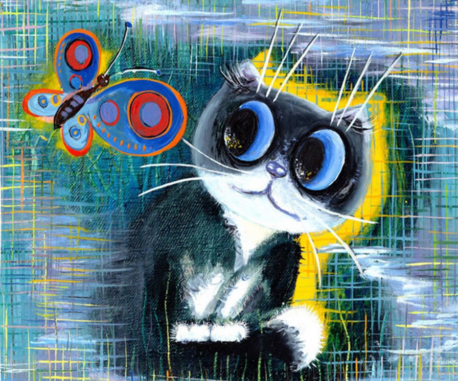 Комментарии к схеме вышивки «Котик с бабочкой» (№570954)