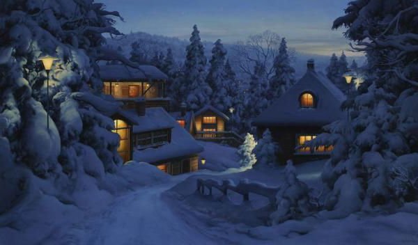 Теги: зима, рябина, хата, снегирь, природа, домики, ягодки, домик.