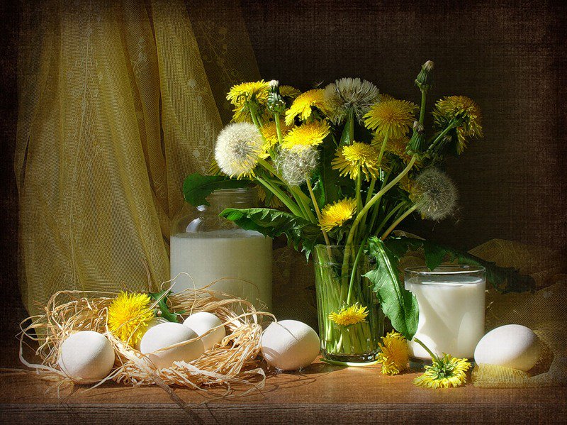 Схема вышивки «Натюрморт с одуванчиками» (№573991)