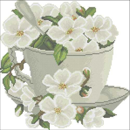 Схема вышивки «белые цветы в чашке» (№574403)