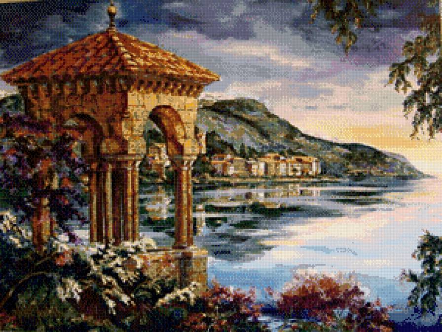 Схема вышивки «пейзаж с храмом» пейзаж с храмом
