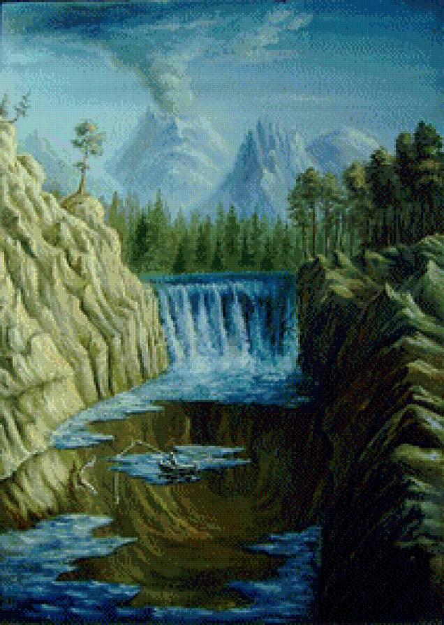Теги: пейзаж, пейзаж с водопадом, водопад, щедрин, картина.
