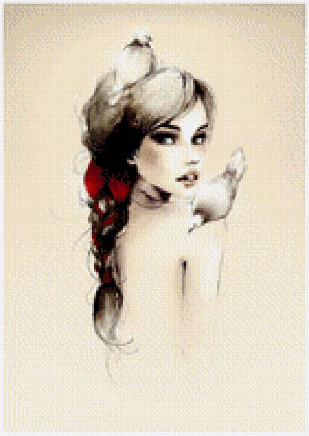 Комментарии к схеме вышивки «Девушка и голуби» (№623297)