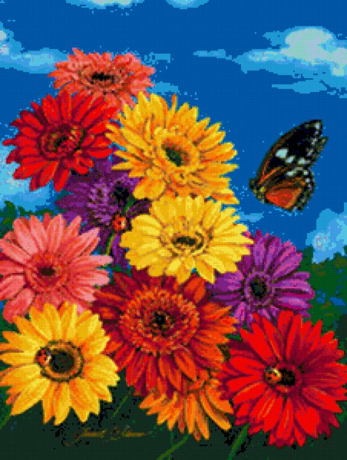 Схема вышивки «цветы и бабочка» (№631497)