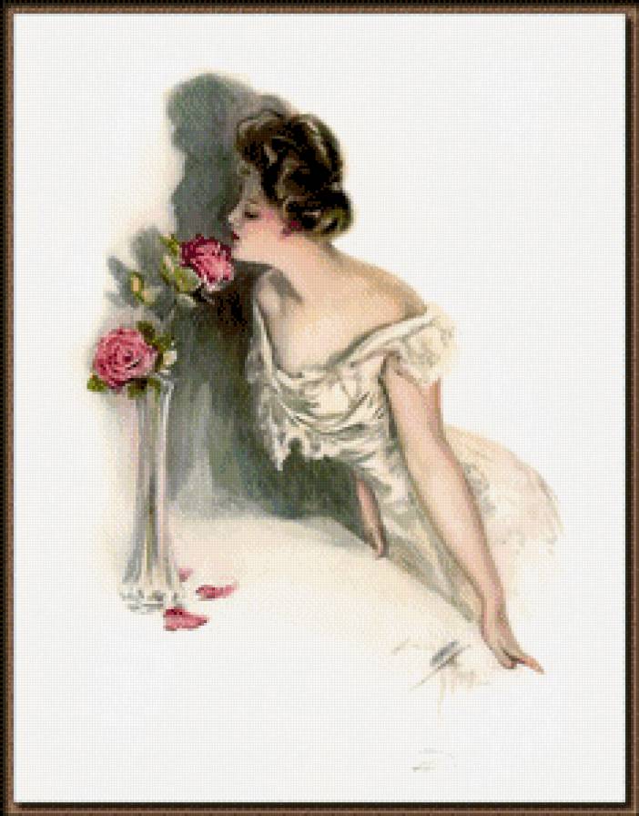 Схема вышивки «девушка с розами» (№636237)