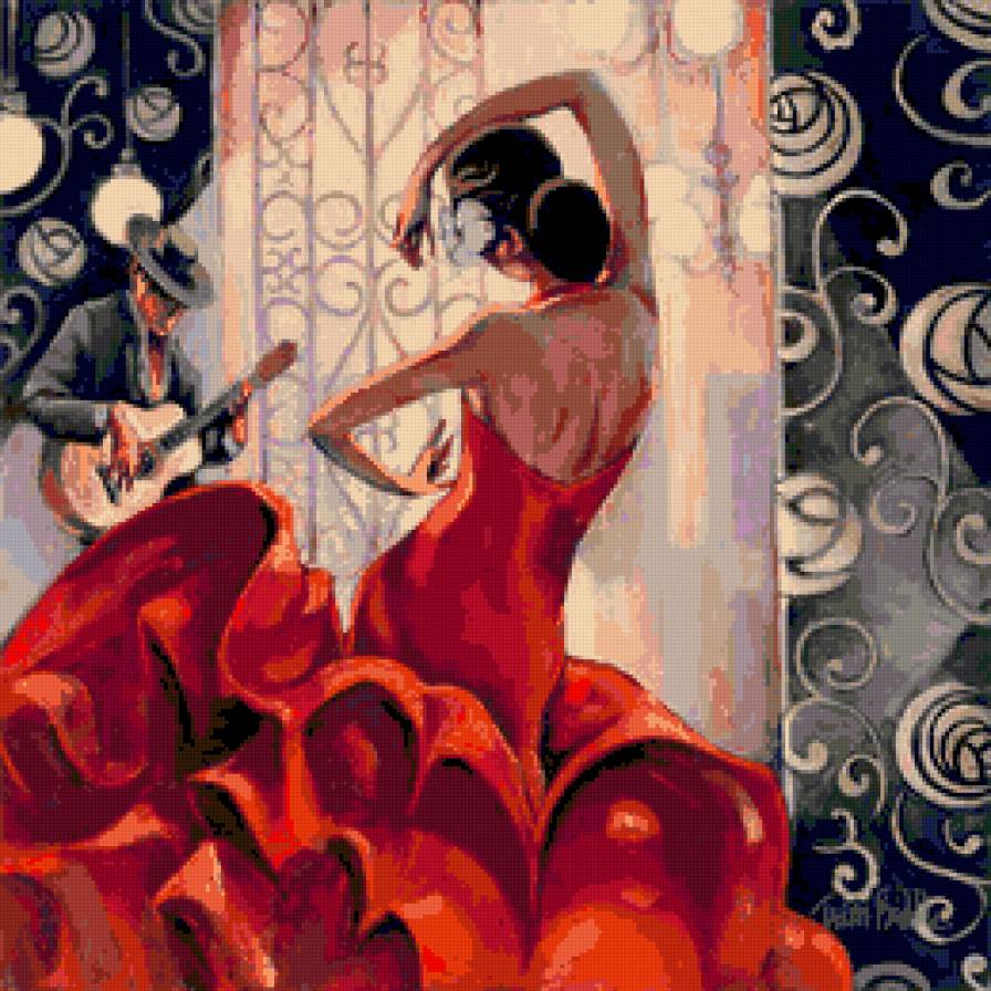 Схемы вышивки, похожие на «Танцовщица Фламенко. Биддл Триш» (№646059) по сюжету