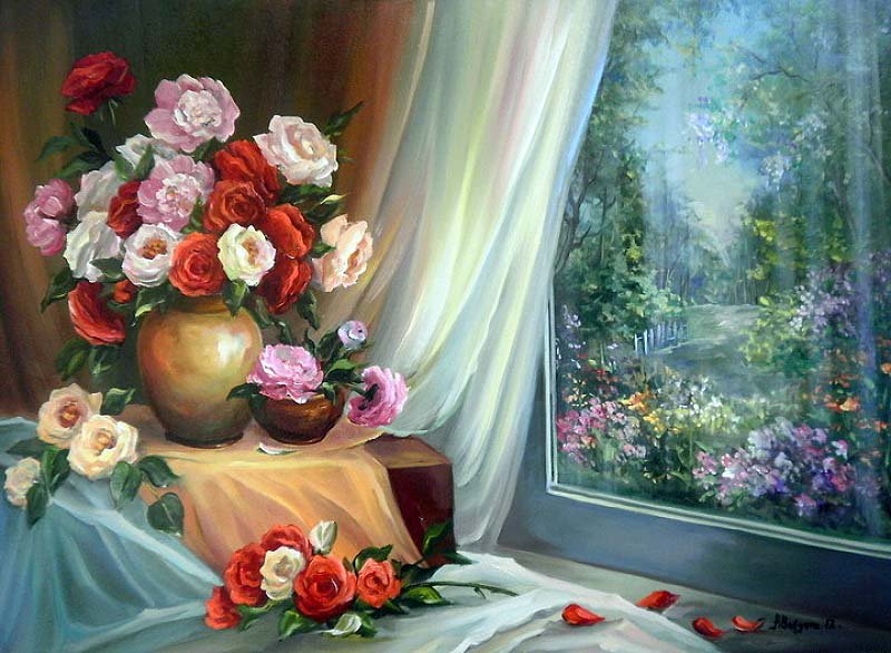 Комментарии к схеме вышивки «букет цветов у окна» (№653290)