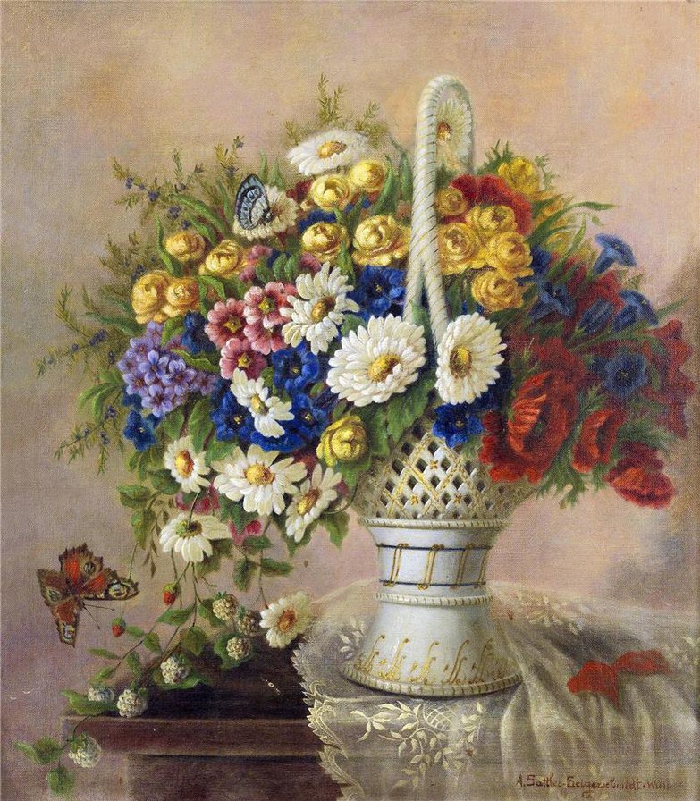 Теги: живопись, картина, цветы, натюрморт, ваза, цветы в хрустале.