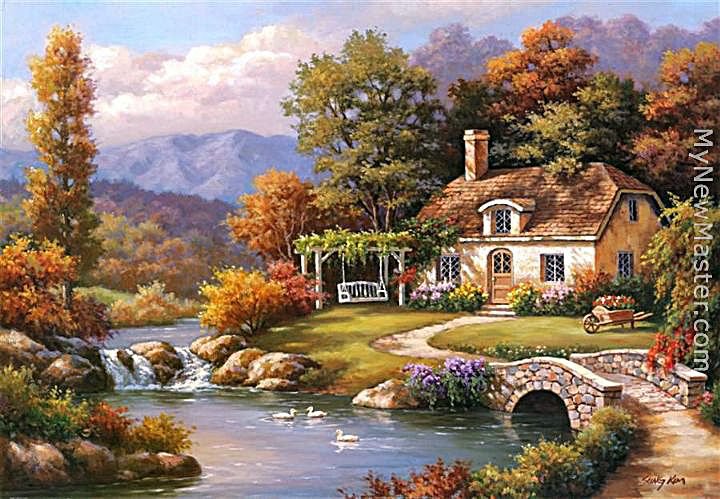Теги: домик, сказка, пейзаж, водопад, природа.