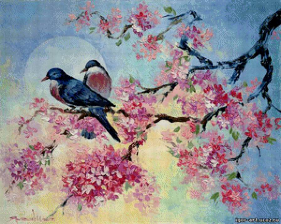 Схемы вышивки, похожие на «птицы на сакуре» (№666053) по сюжету