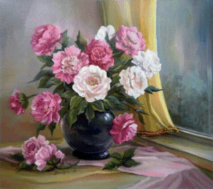 Теги: букет, ниша, белые цветы, розы, розовые цветы.