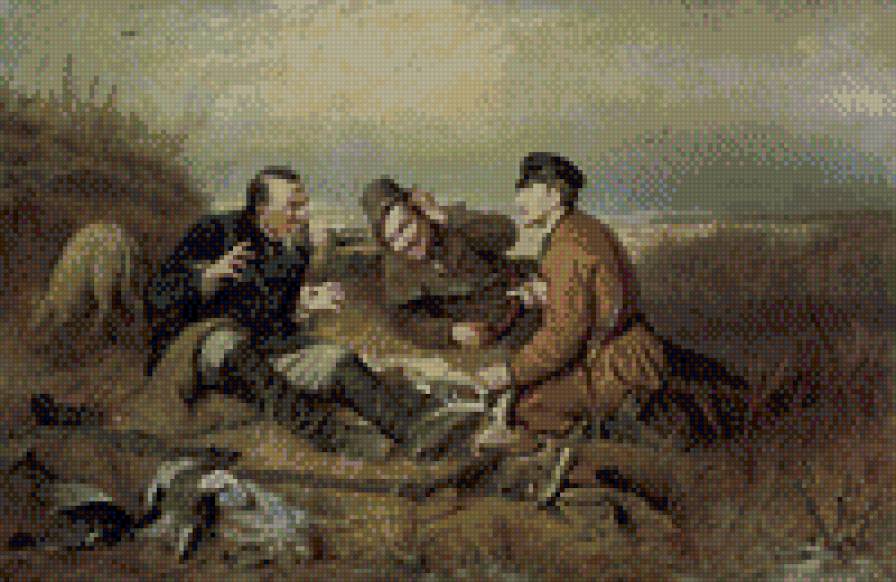 Схема вышивки «охотники на привале» (№669868)