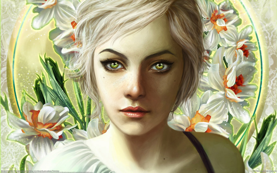 Комментарии к схеме вышивки «девушка с нарциссами» (№68717)