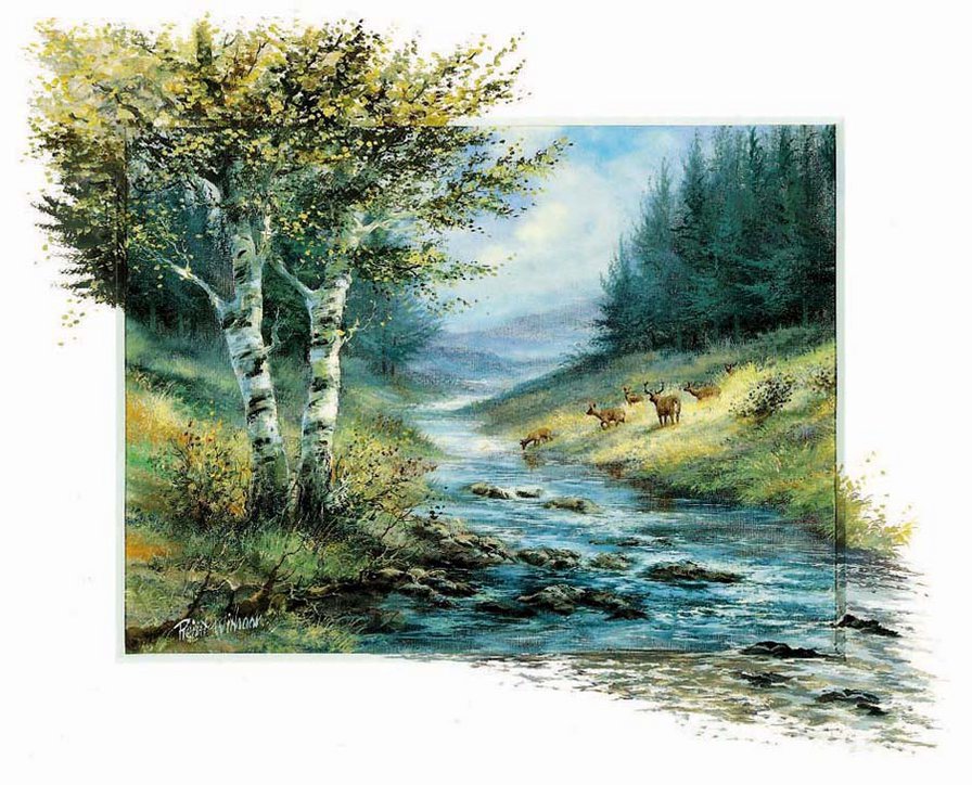 Теги: береза, река, природа, лето, пейзаж, картина.