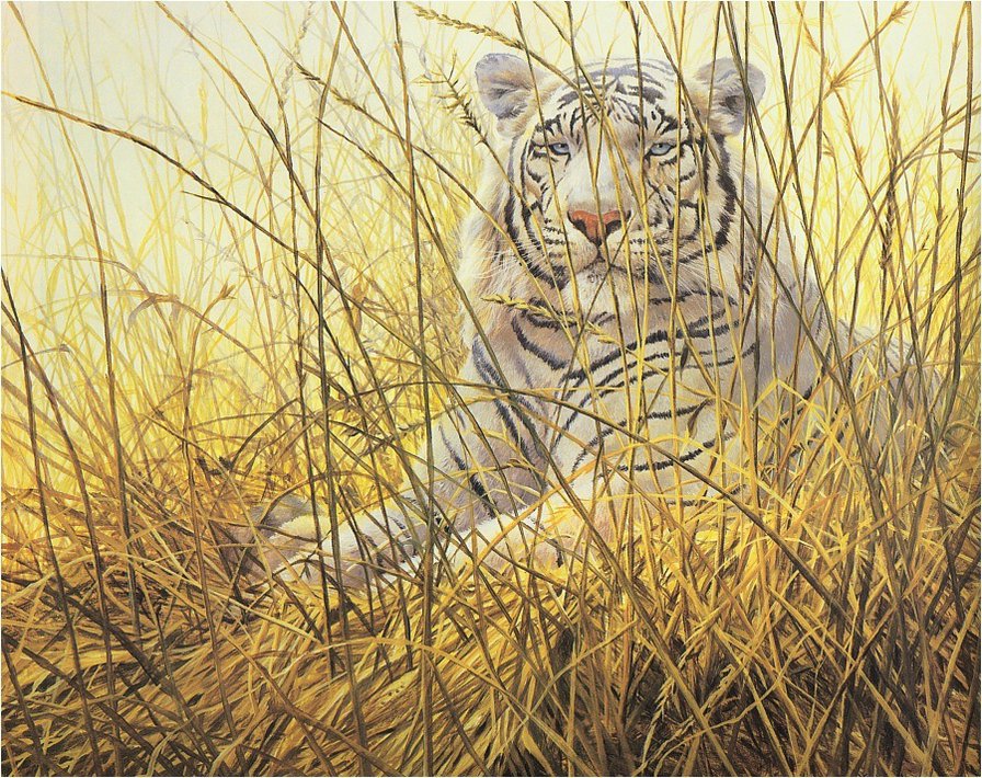Схемы вышивки, похожие на «Белый тигр в траве» (№70156) по сюжету