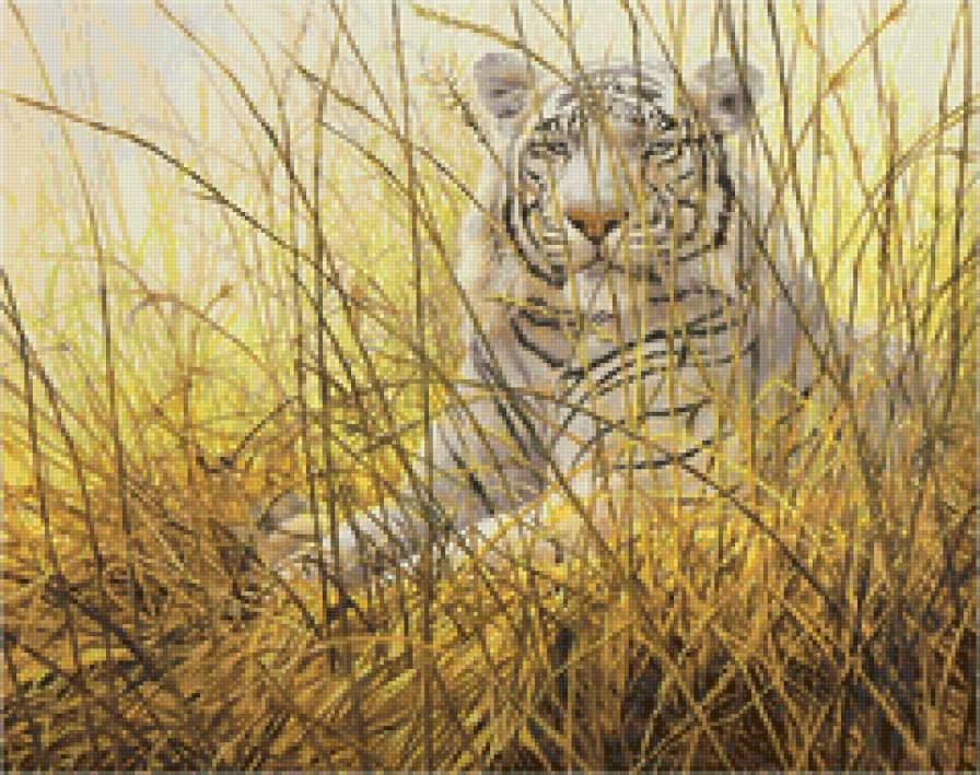 Схема вышивки «Белый тигр в траве» (№70156)