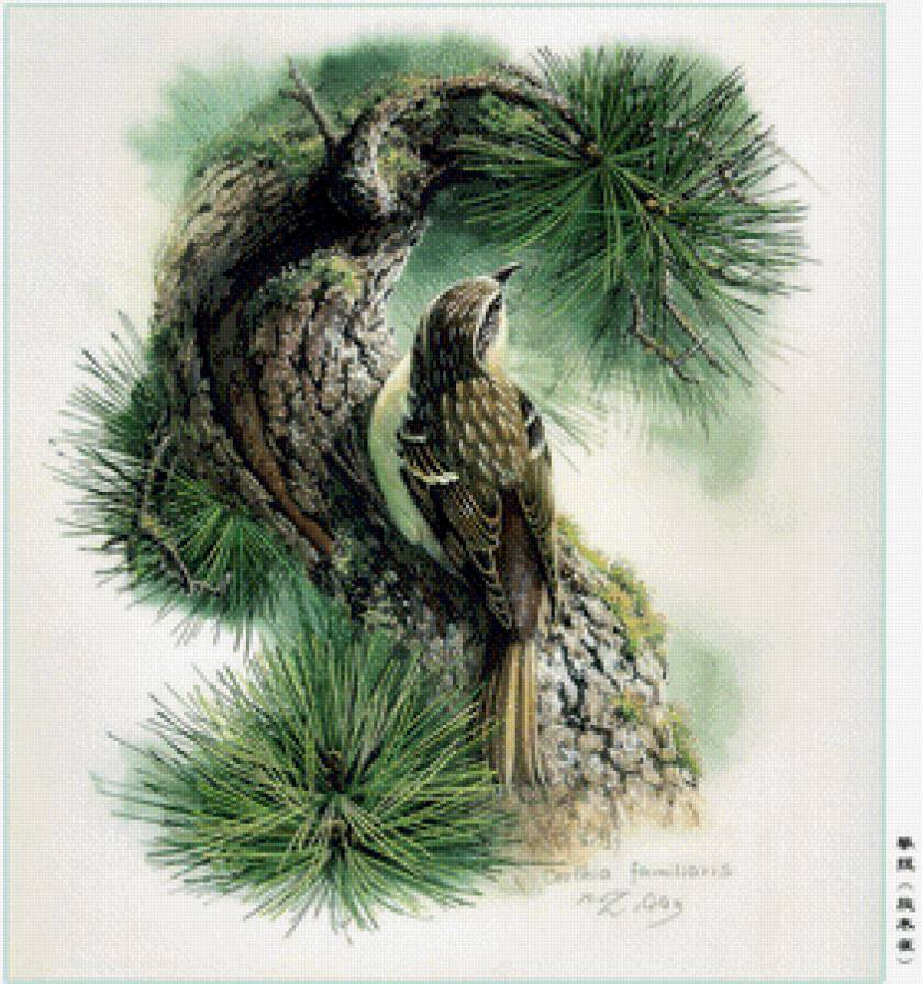 Схема вышивки «Птичка на еловой ветке» (№704655)