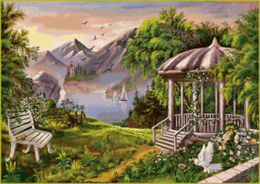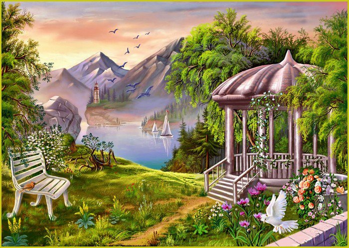 Теги: природа, беседка, tomas kinkade.