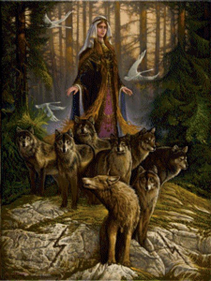 Схема вышивки «Дева с волками» (№731593)