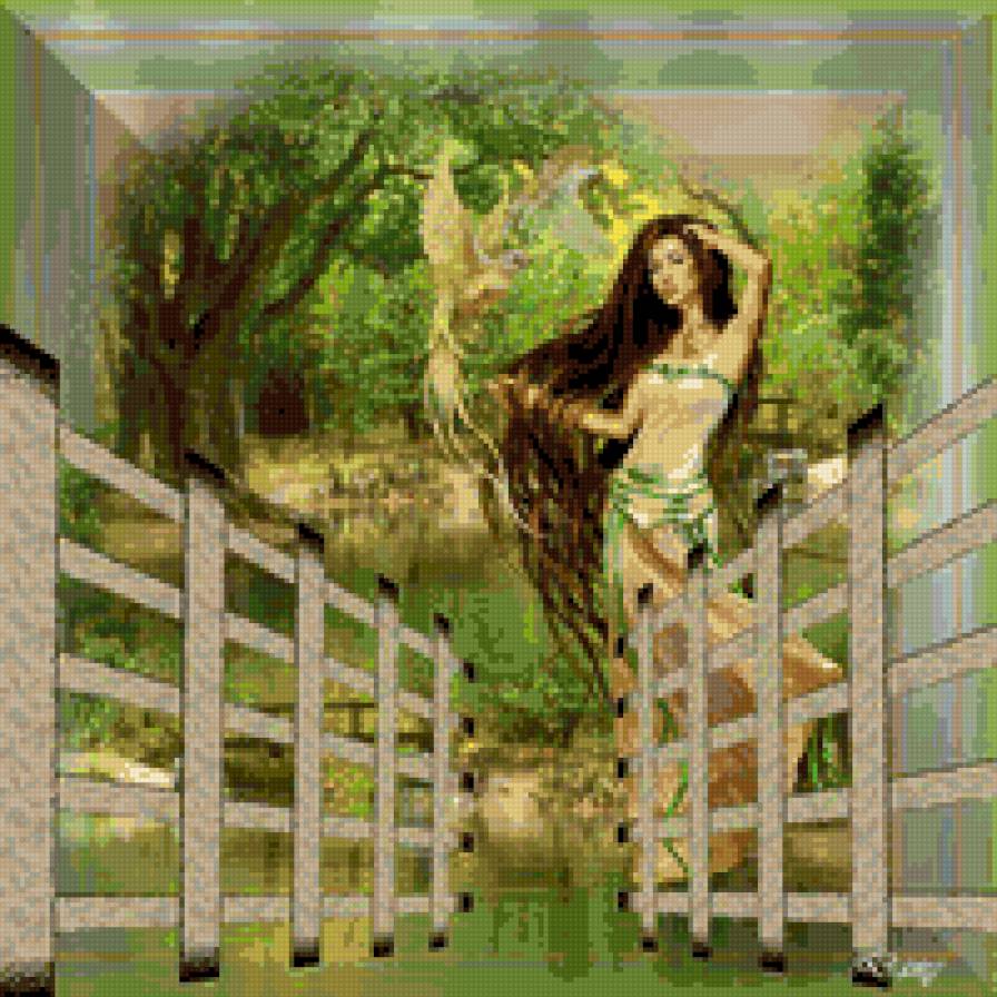 Схема вышивки «Девушка с пером павлина» Девушка с пером павлина