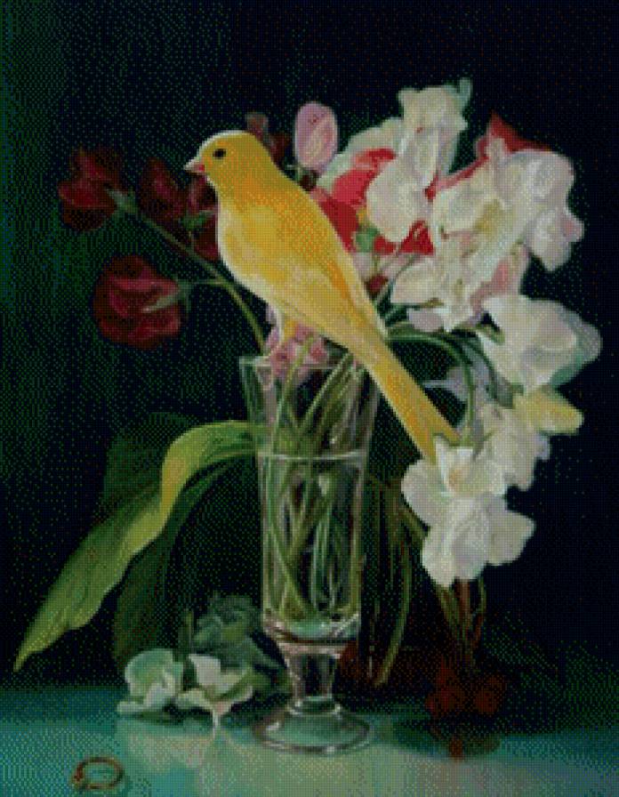 Схемы вышивки, похожие на «канарейка и цветы» (№772288) по сюжету