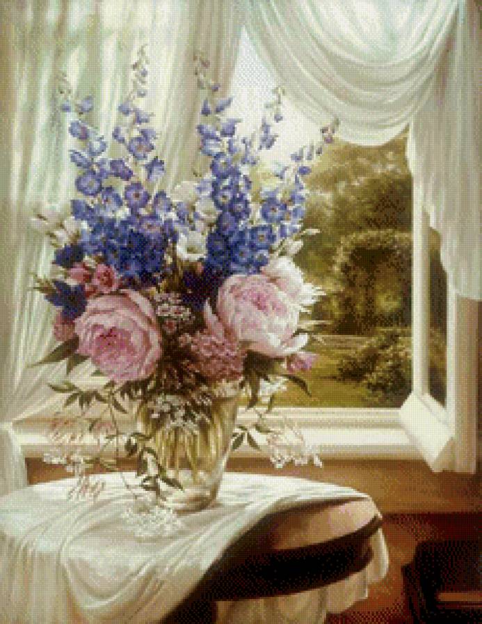 Схемы вышивки, похожие на «букет у окна И.Левашова» (№775586) по сюжету