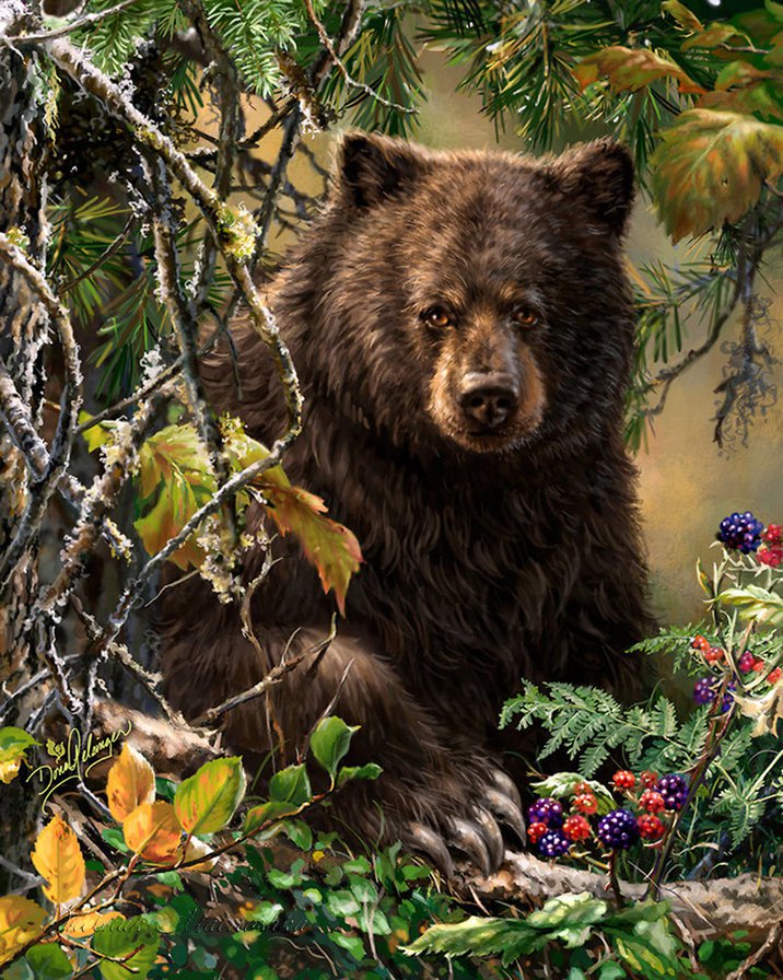 Теги: медведь, гора, животные, река, пейзаж, лес.