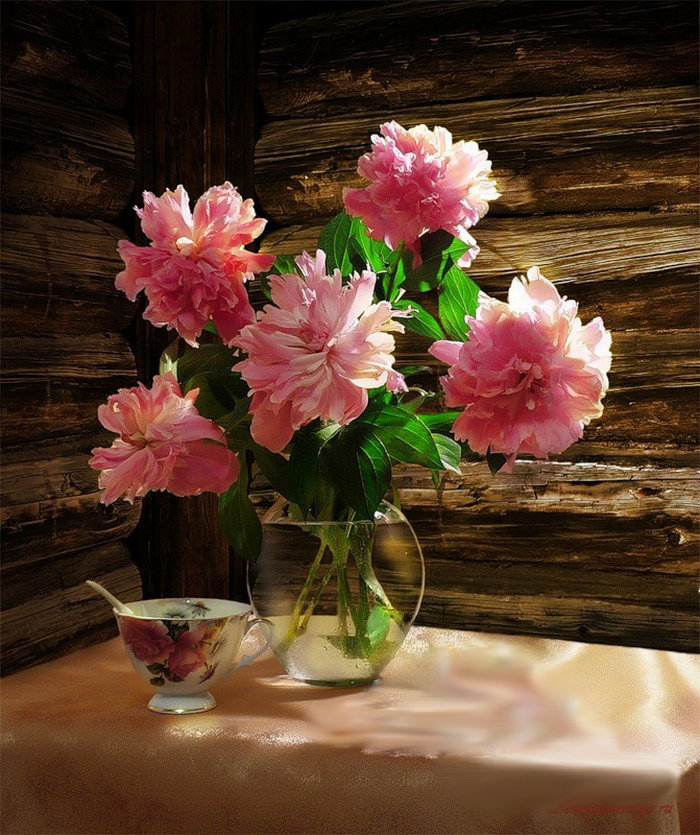 Схема вышивки «пионы с чашкой» (№821807)