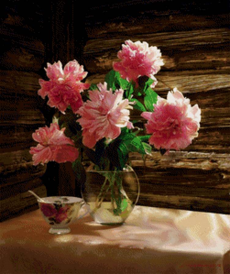 Комментарии к схеме вышивки «пионы с чашкой» (№821807)